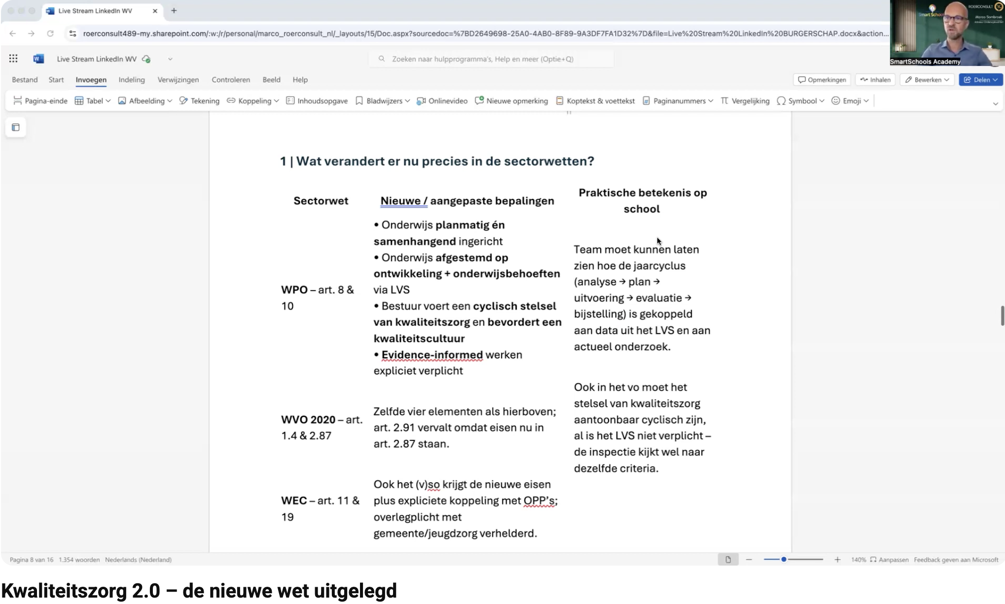 In de opname van deze sessie bespreekt Marco Sombroek: • Wat er precies verandert in de sectorwetten (WPO, WVO 2020, WEC) • Hoe het onderwijs planmatig en samenhangend ingericht moet worden • Wat het betekent om onderwijs af te stemmen op ontwikkeling én onderwijsbehoeften • Hoe je een kwaliteitscultuur bevordert binnen je schoolorganisatie • Wat de nieuwe wettelijke plicht tot evidence-informed werken inhoudt (en waarom dit zo’n gamechanger is) • Hoe dit wetsvoorstel aansluit op het toezichtkader van de Inspectie